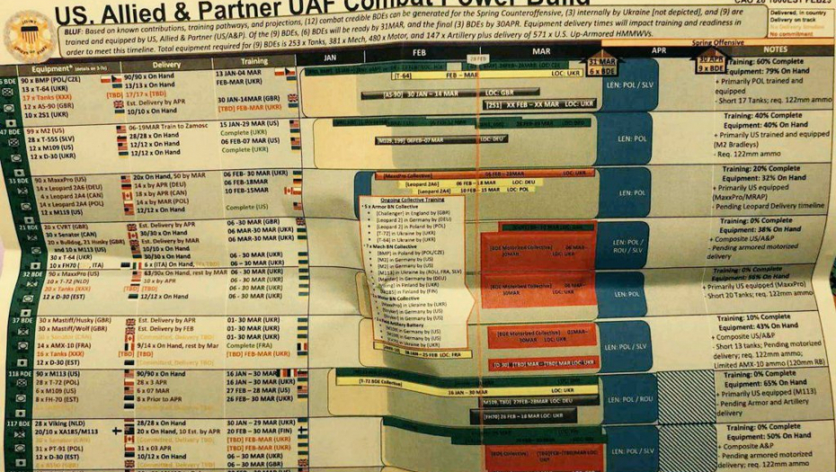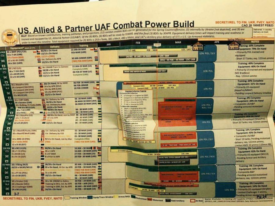 Iz objavljenih dokumenata ne vide se konkretni ratni planovi u smislu kada, gde i odakle Ukrajina namerava da pokrene svoju kontraofanzivu za koju američki zvaničnici kažu da predstoji u par narednih meseci, a pošto su dokumenta stara pet sedmica, ona pokazuju jednu vremensku sliku - američko i ukrajinsko gledište vezano za 1. mart u pogledu potreba ukrajinske vojske za tu kontraofanzivu.