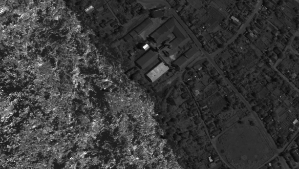 Sledeća fotografija prikazuje selo Korsunka snimljeno satelitom 15. maja, dok je donja fotografija nastala juče nakon što je selo poplavljeno, piše Index.