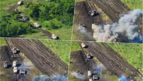 - Ovako je kolona Oružanih snaga Ukrajine naletela na minsko polje. Oklopna vozila su uništena, a tenkove "naduvene" minama dokrajčila je vojna avijacija - navodi se na kanalu na Telegramu na kome je objavljen snimak.