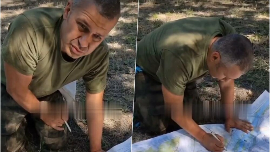 Na snimku se vidi kako Tomov navodno pokazuje na karti položaje ruskih snaga na levoj obali Dnjepra.