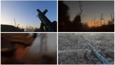 Snimak prikazuje ukrajinske borce u žestokoj razmeni puščane vatre i ručnih granata, dok oko njih, osim gelera, lete i zemlja i ostaci drveća.