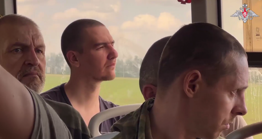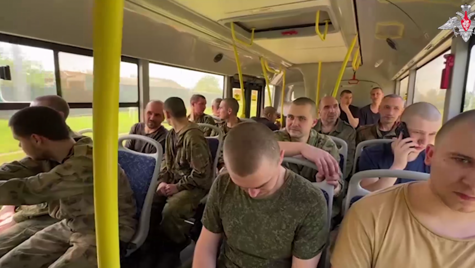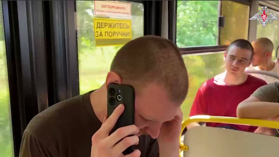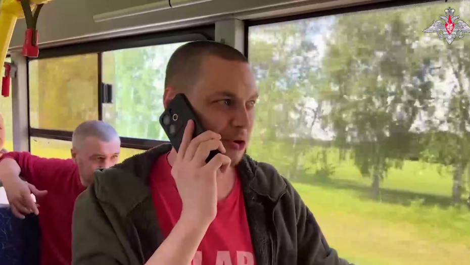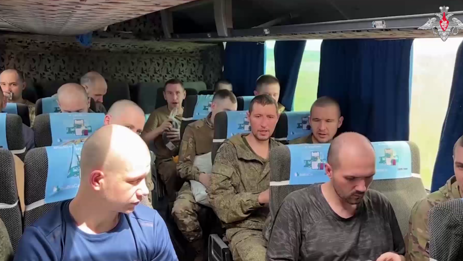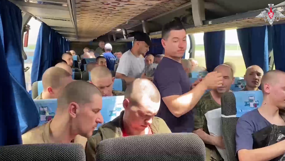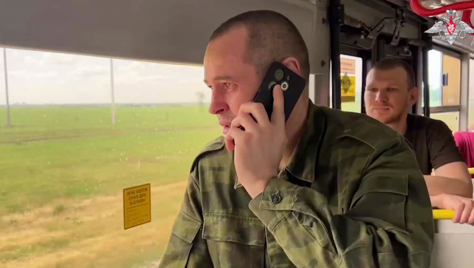 Na snimku se vide ruski vojnici koji se vraćaju iz ukrajinskog zarobljeništva.