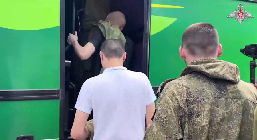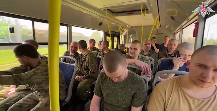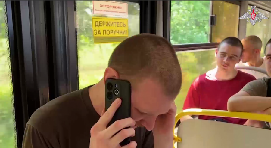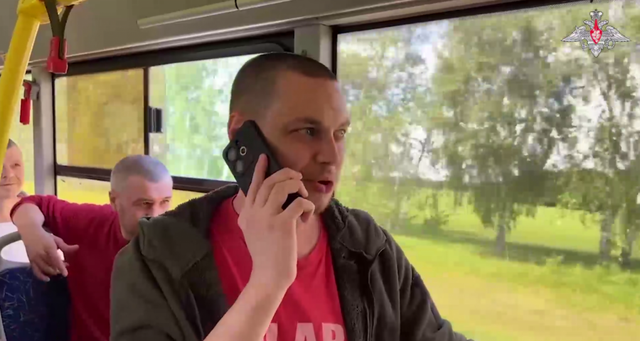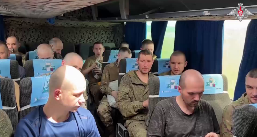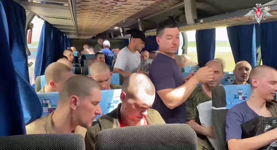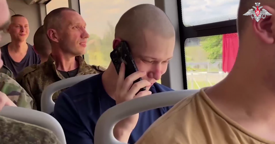 Na snimku se vide ruski vojnici koji se vraćaju iz ukrajinskog zarobljeništva.