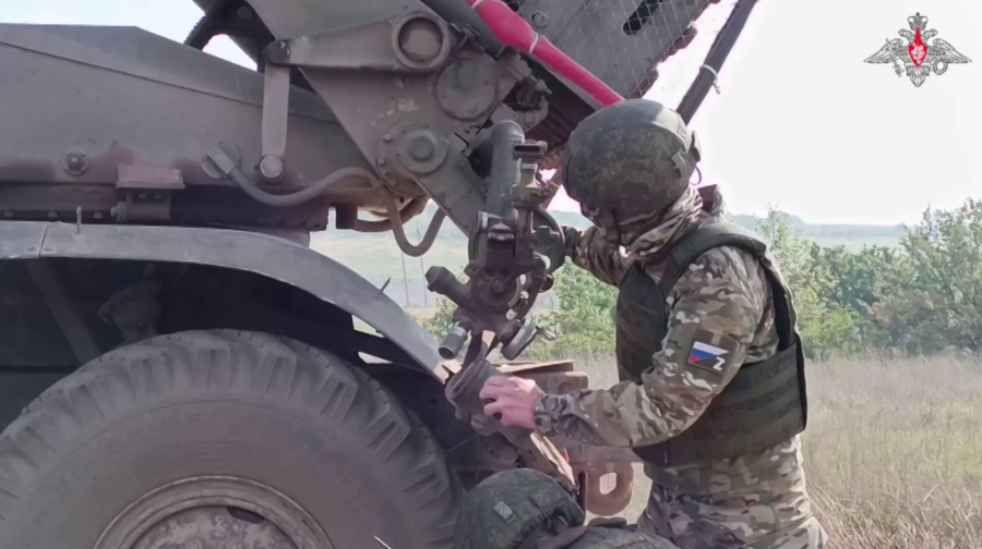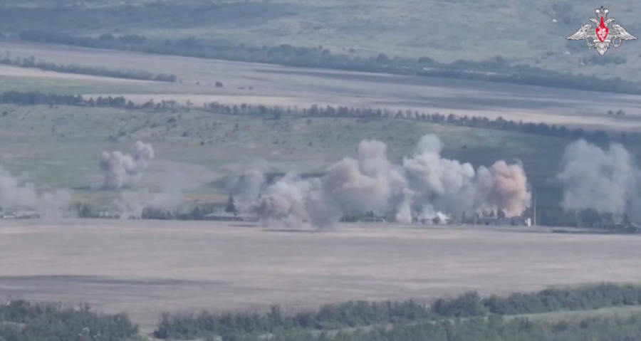 - Artiljerija Jug grupe ispalila je salvu od 122 mm visokoeksplozivnih projektila na položaje na položaje ukrajinskih snaga. Koordinisani napori posade MLRS-a Grad i izviđačkih jedinica efikasno podržavaju dejstva jurišnih jedinica, izvodeći masovne udare na utvrđena područja, opremu i ljudstvo OSU - navodi rusko MO u opisu snimka.