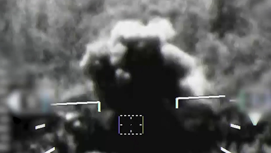 Kako se navodi u opisu snimka, udar je izveden nevođenim vazdušnim projektilima na izviđačke ciljeve.