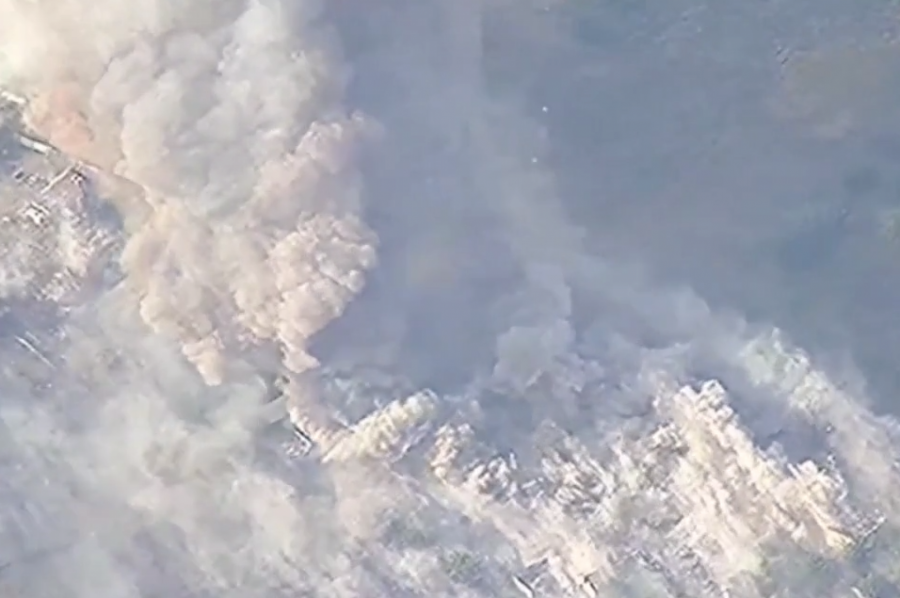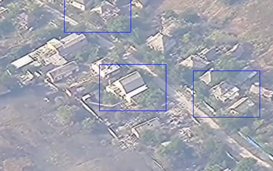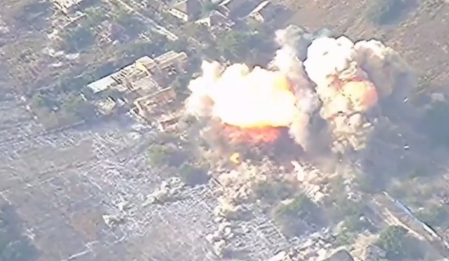 Na priloženom snimku se vidi kako padaju tri bombe i sa tri ogromne eksplozije.