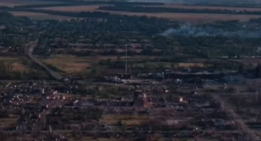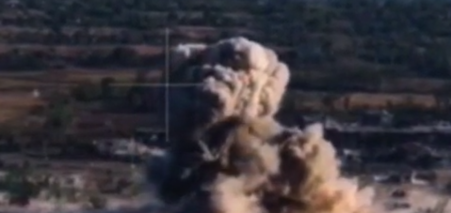 Kako se navodi u opisu snimka, ruska avijacija pogodila neprijateljski položaj u Volčansku bombom FAB-3000.