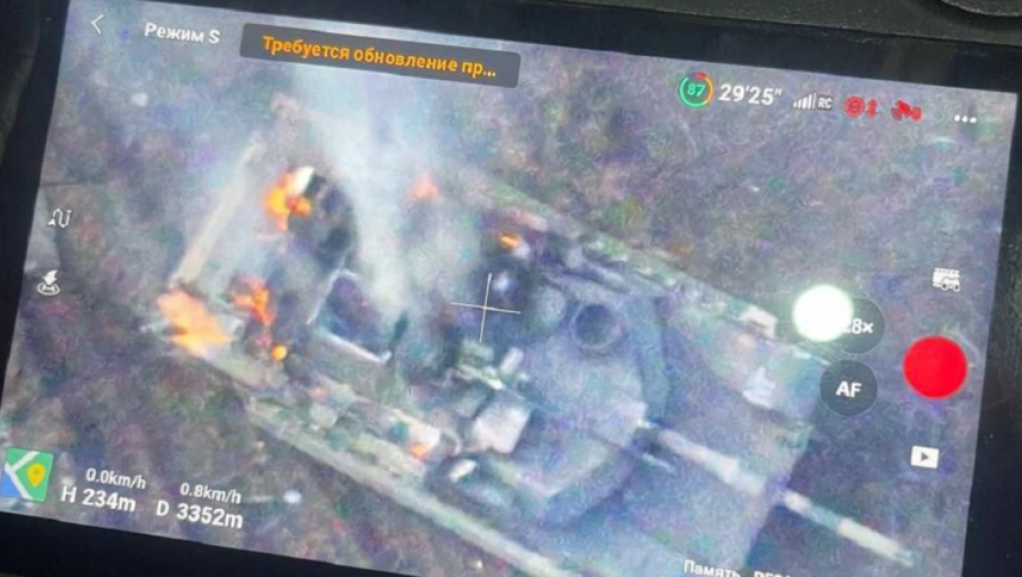 Ovaj tip drona, koji koristi ruska vojska, primećen je kako direktno pogađa kupolu tenka, što sugeriše da je prouzrokovana apsolutno nepopravljiva šteta na opremi instaliranoj na ovom teškom oklopnom vozilu.