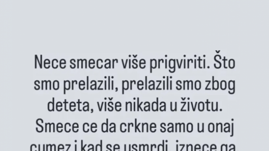 - Neće smećar više priviriti. Što smo prelazili, prelazili smo zbog deteta, više nikada u životu. Smeće će da crkne samo u onom ćumezu i kada se usmrdi, izneće ga. Odrekla ga se i deca. Željka zastupam ja do punoletstva, Ivan mu nije ni na kraj pameti, niti ikada pita za smećara - poručila je Marija u svom stilu.