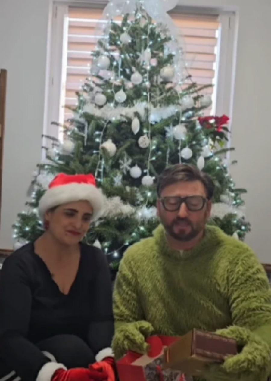 Na videu, Nataša je bila prerušena u Deda Mrazicu, dok je Aleksandar nosio kostim Grinča, unoseći dodatnu dozu zabave. Pozirali su ispred impozantne jelke, koja se prostire od poda do plafona, u prelepim belim nijansama.