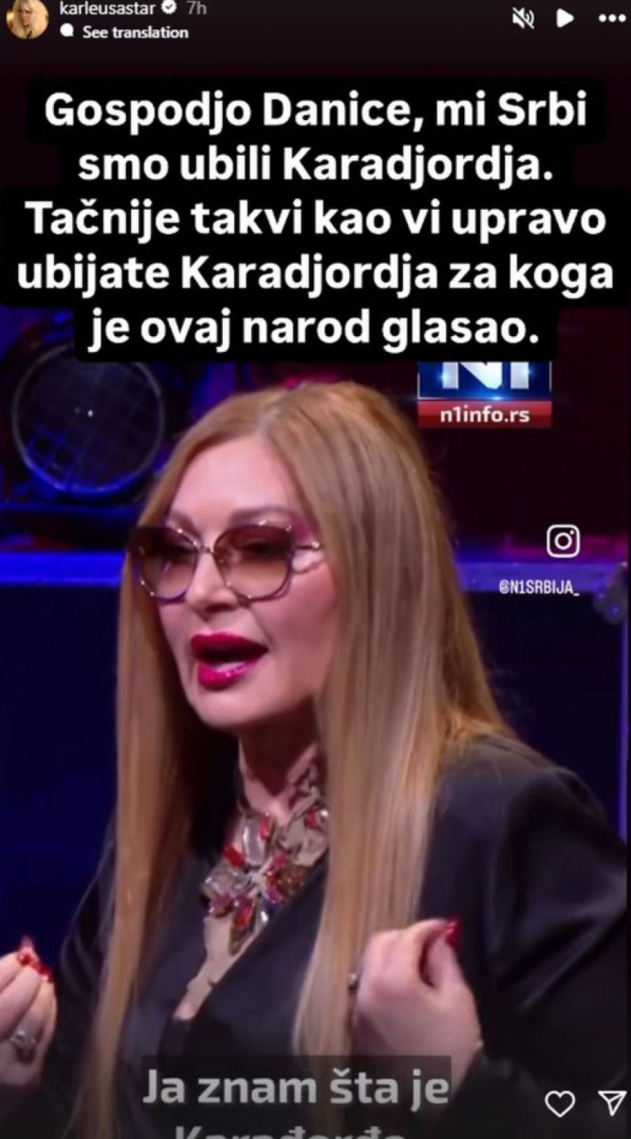 Nakon što je Danica javno istakla da smatra da danas nedostaje lider poput Karađorđa, Karleuša se nije libila da joj odgovori.
