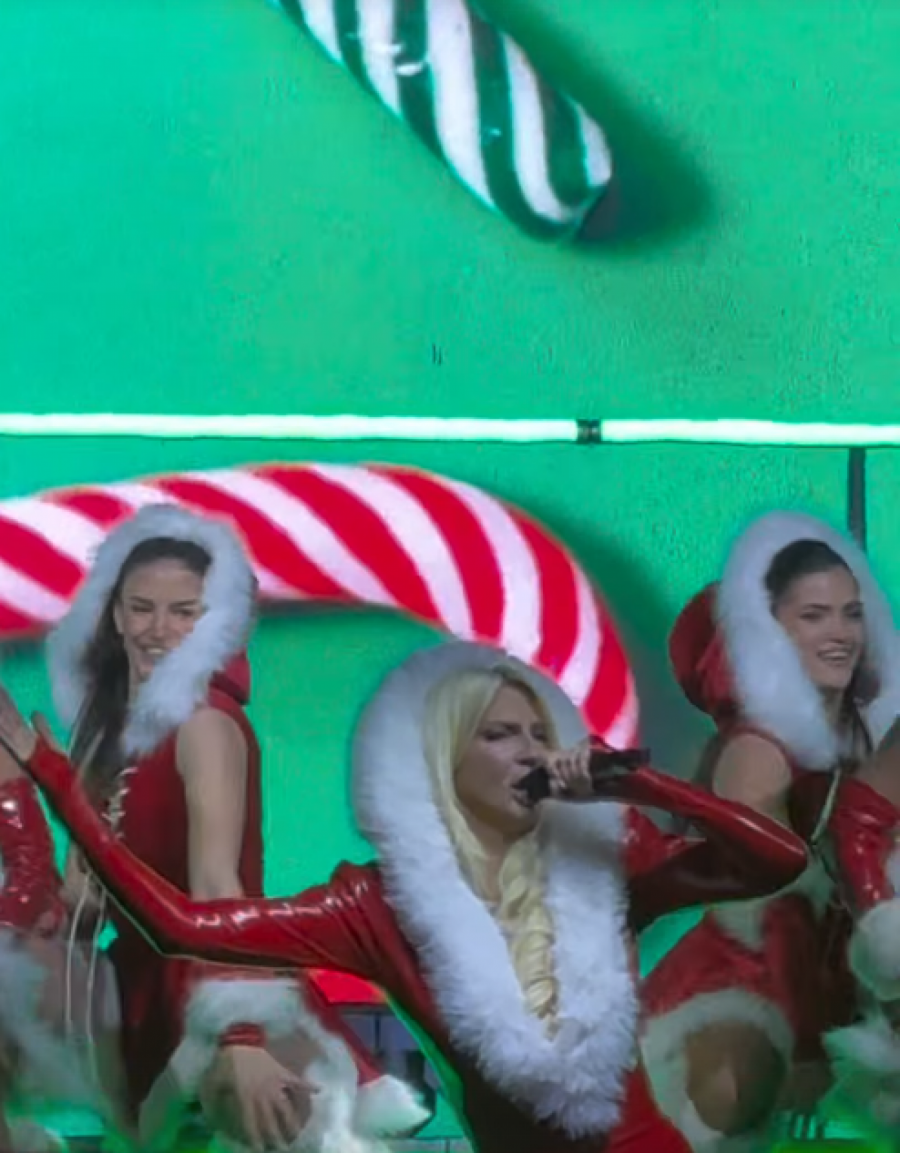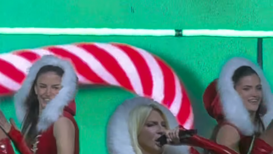 Čim je izašla na scenu, Jelena je publiku svojim izgledom ostavila bez reči. Ponesena prazničnom atmosferom Jelena je obukla crveni lateks kostim i izgledala je kao prava Baba mrazica.