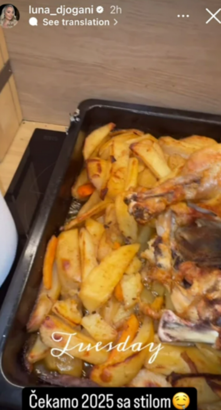 Inače, Luna i Marko su već tokom dana krenuli sa spremanjem specijaliteta, a na meniju su se našli piletina i hrskavi krompir iz rerne, kao i kiflice, koje je Luna ponosno podelila sa svojim pratiocima na Instagramu.
