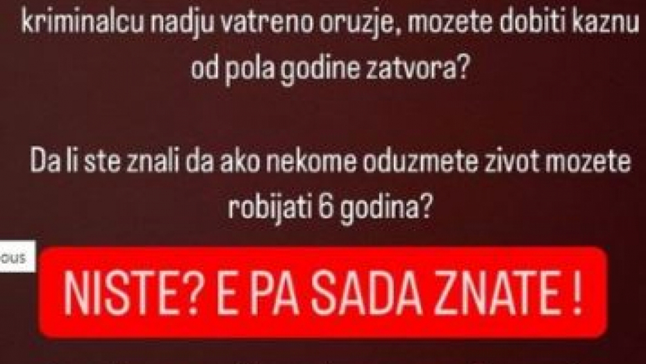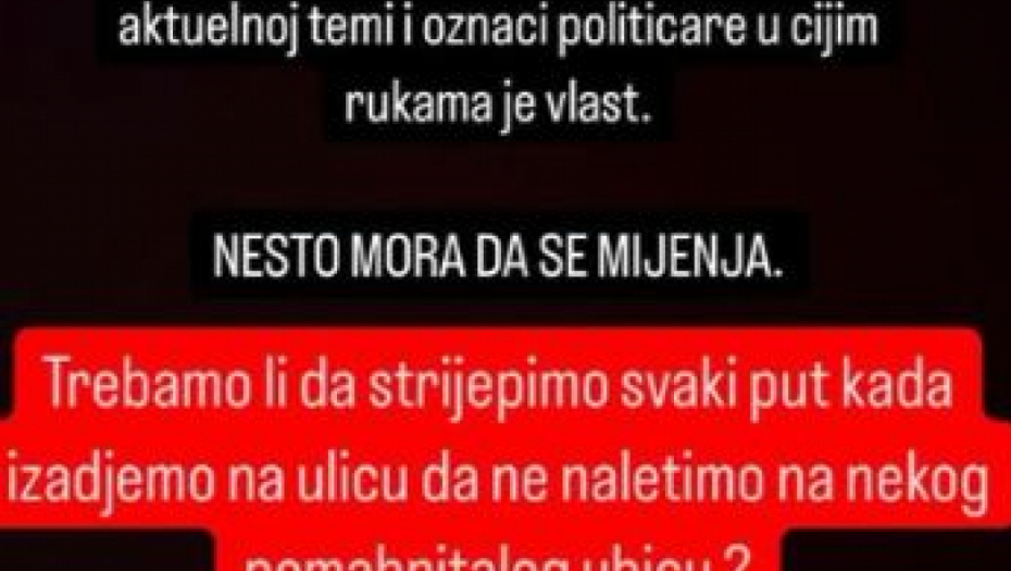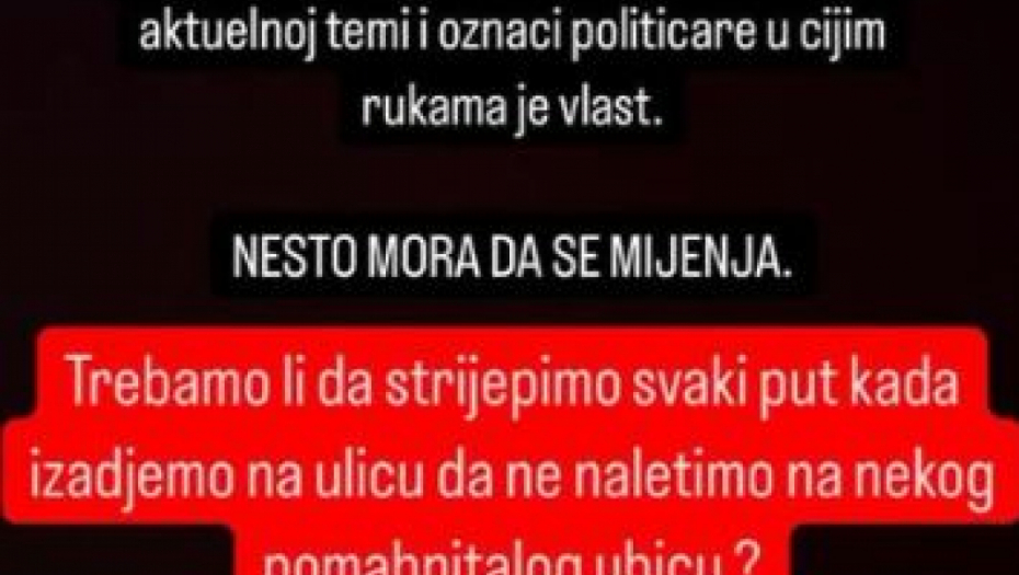 - Trebamo li da strepimo svaki put kada izađemo na ulicu da ne naletimo na nekog pomahnitalog ubicu? Trebamo li svi da se naoružamo, pa da idemo ulicom kao da smo na divljem zapadu? - zapitao se bivši rijaliti učesnik.