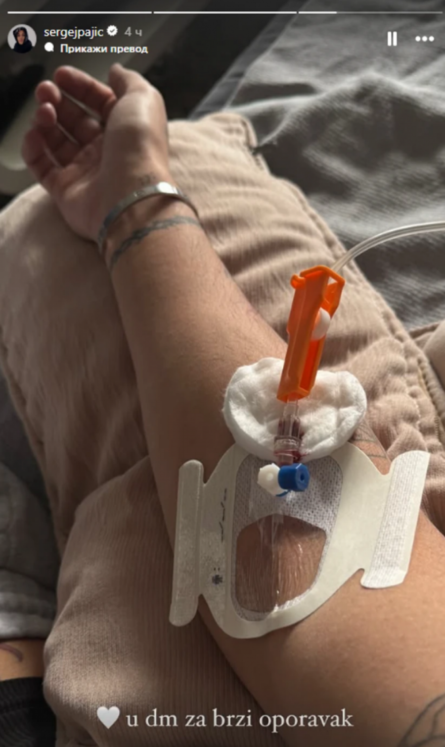 Sergej Pajić završio je na infuziji, a fotografiju na kojoj se vidi kako mu je igla zabodena u ruku objavio je na svom Instagram profilu.