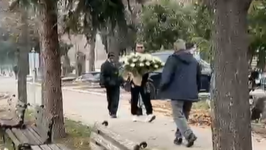 Ceca se na groblje pojavila sva u crnom, sa kapom na glavi i ogromnim tamnim naočarima, dok je Anastasija bila u dugačkom sivom kaputu.