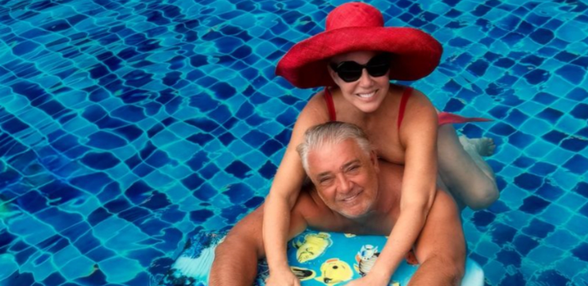 U crvenom bikiniju, sa šeširom na glavi, opušta se dok je Boba tu da joj boravak u vodi bude što udobniji. Na snimku se vidi kako se pevačica oslanja na dasku za plivanje, dok sa suprugom pliva u bazenu.