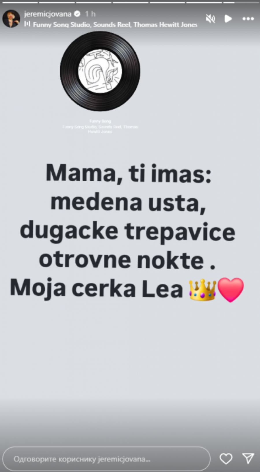 Njih dve su mnogo vezane jedna za drugu, a u prilog tome govore slike i snimci koje Jeremićeva redovno deli na društvenim mrežama sa svojom naslednicom.