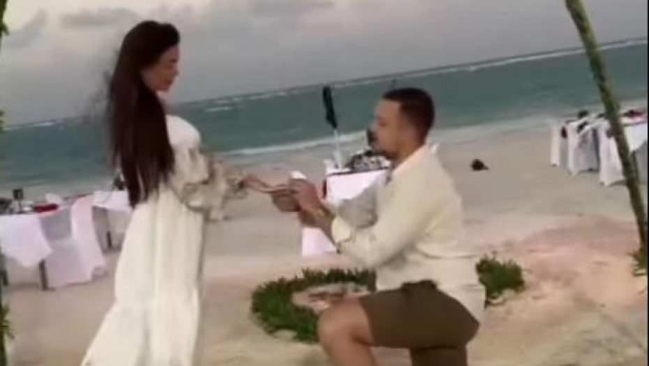 Uroš je sa devojkom koja je u drugom stanju, otputovao na egzotičnu destinaciju, te ju je u romantičnom restoranu koji se nalazi na plaži, tik uz more, zaprosio.