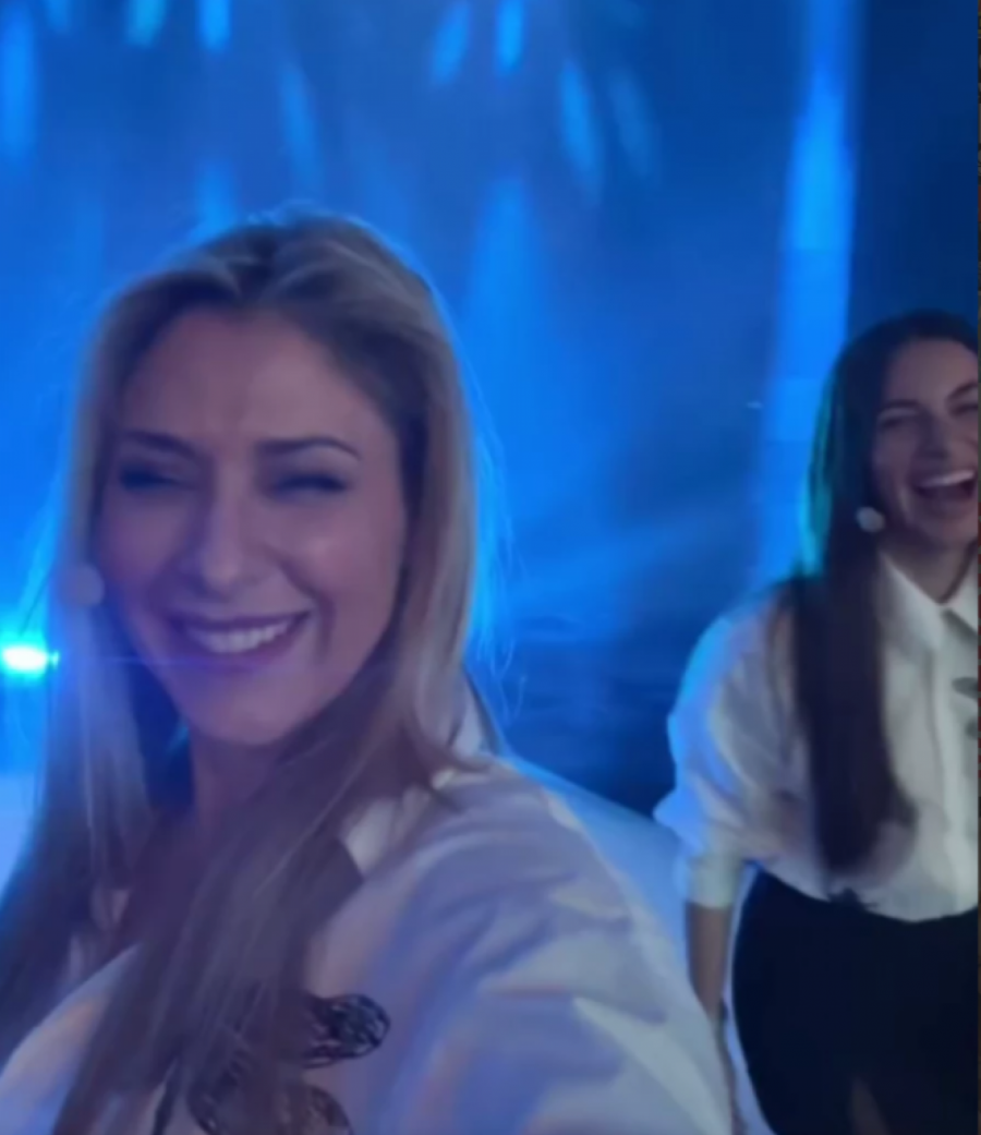 Na svom Instagram nalogu Kristina je objavila snimak sa jedne od proba, a u videu se pojavila i njena atraktivna koleginica Dragana Kosjerina Preduv koja je bila obučena u belu bluzu, kratku suknju i crne čarape.