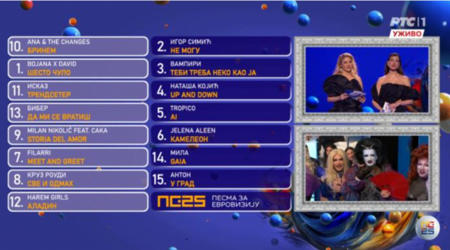 U velikom finalu takmičenja „Pesma za Evroviziju“, koje će biti održano u petak, 28. februara u 21 čas, nastupiće 16 izvođača.