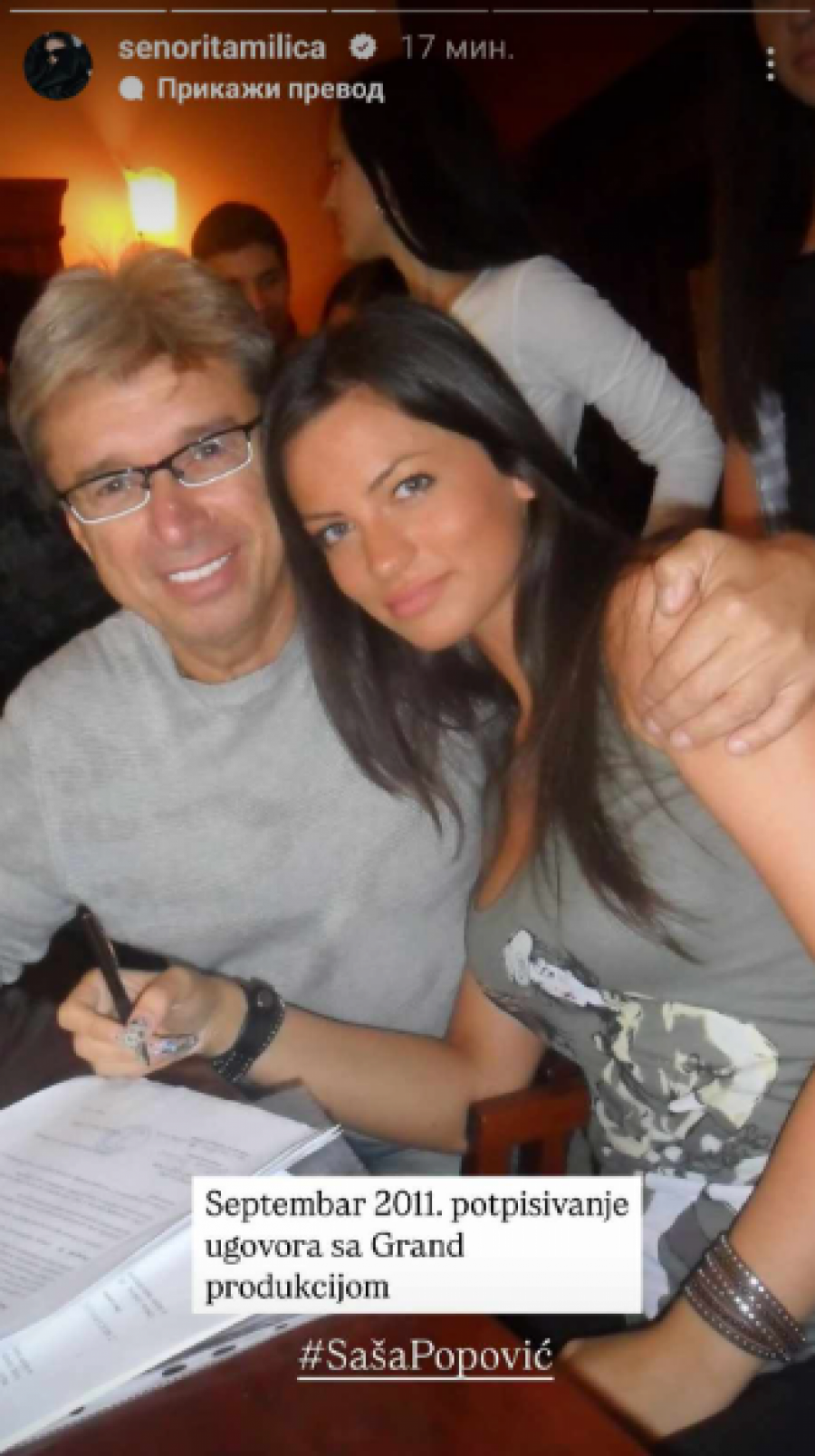 Od Saše se oprostila i Milica Pavlović, objavivši zajedniču fotografiju sa Sašom koja je nastala prilikom potpisivanja ugovora sa Grandom.