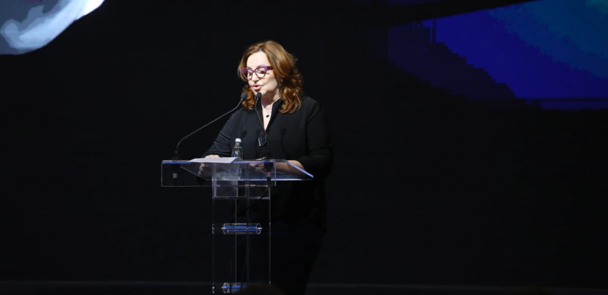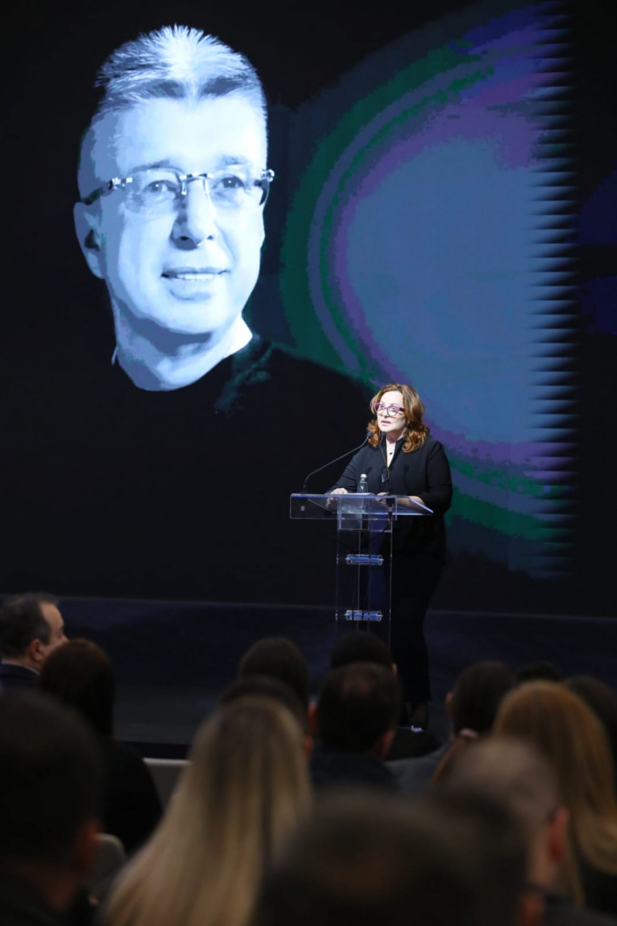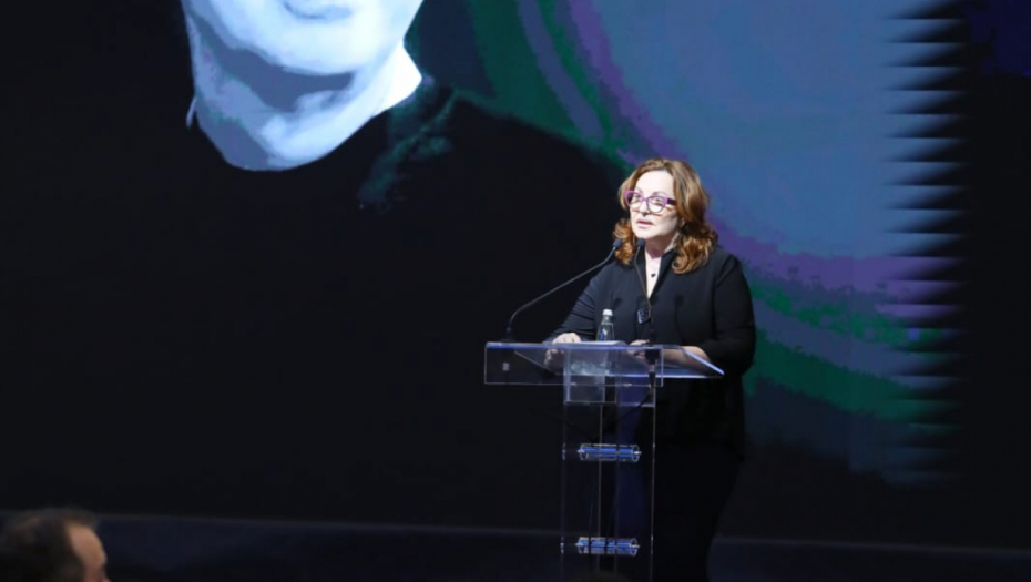Na scenu se nakon govora Voje Nedeljkovića, popela Ana Bekuta kako bi u čast direktora Granda održala govor.