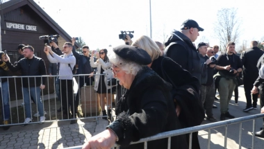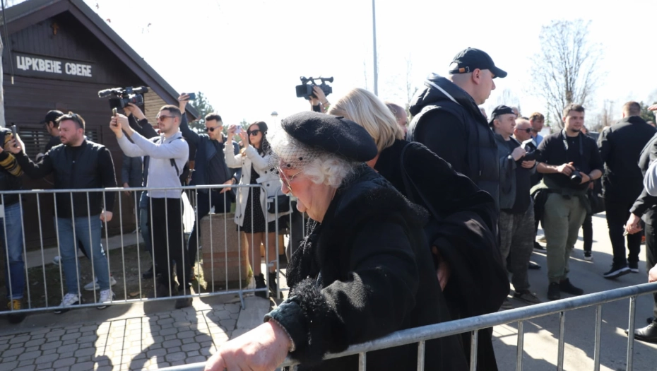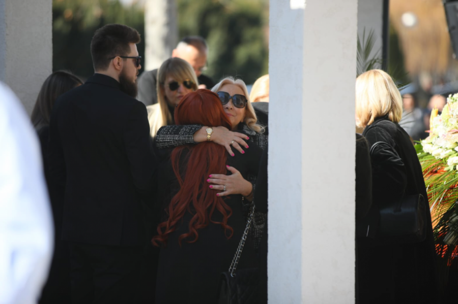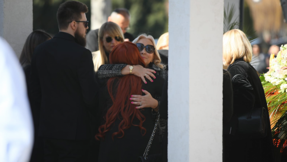 Nakon komemoracije ona je došla na Bežanijsko groblje gotovo bez snage. Nju pridržavaju za ruku kako bi mogla da dođe do mase ljudi koji su se okupili da isprate prijatelja i kolegu na večni počinak.