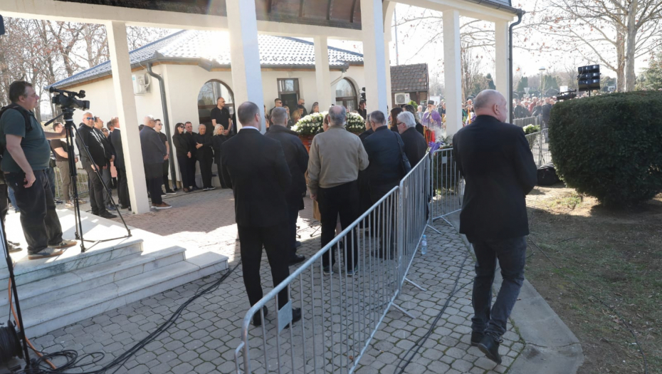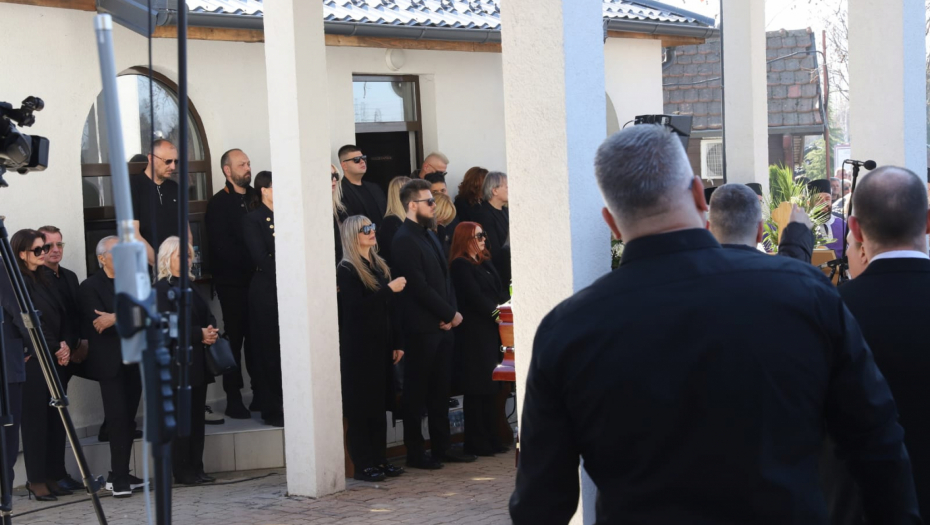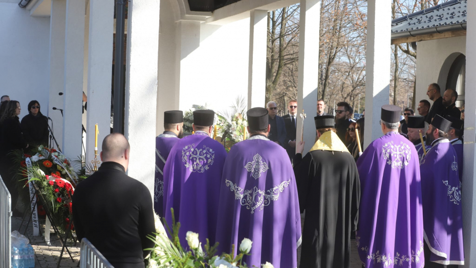Supruga Saše Popovića sve vreme je plakala, a tokom govora sveštenika prekrila je lice rukama.