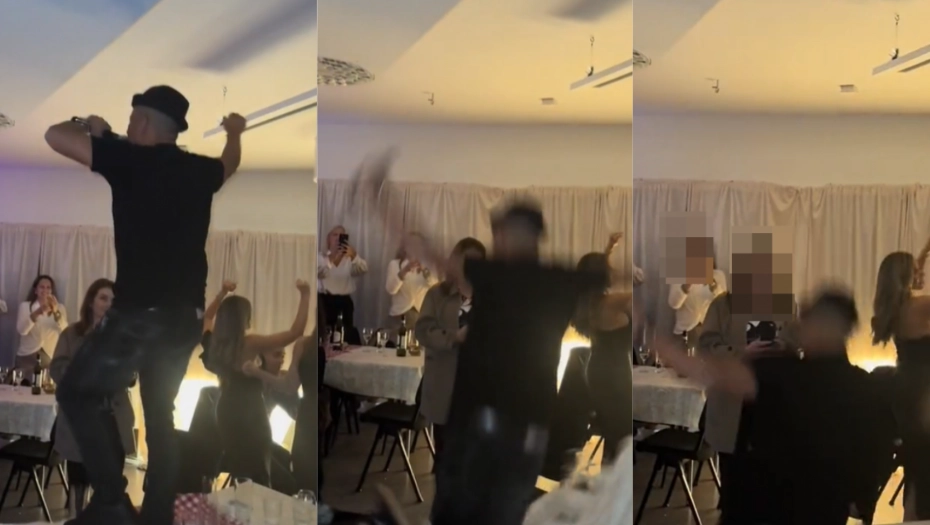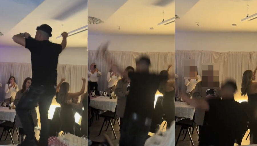 Na društvenim mrežama pojavio se snimak na kojem se vidi kako Husa, u želji da dodatno zagreje atmosferu, odlučuje da se popne na kafanski sto.