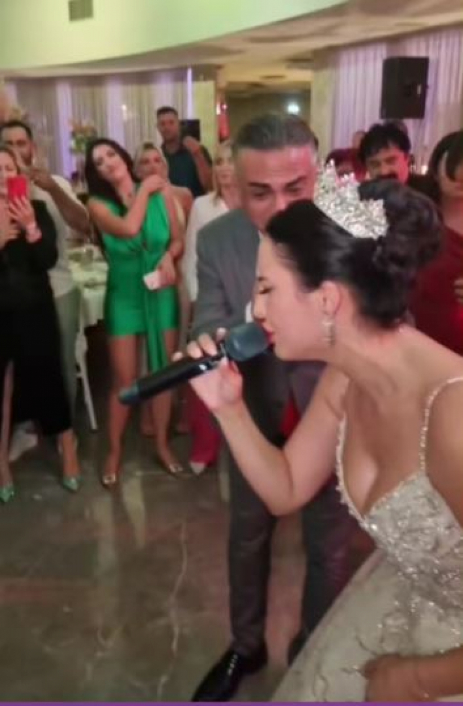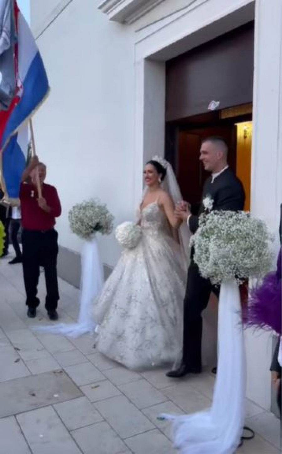 Andrijanin suprug i ona su se zavetovali pre dve godine a Andrijana je tada blistala u beloj venčanici a njen partner je bio u sivom odelu.