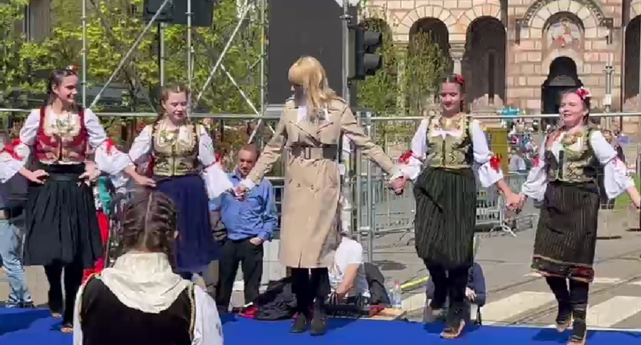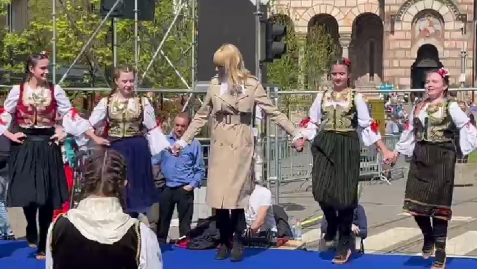 Sa sobom je donela dobru energiju, pa je pred vođenje programa zaigrala kolo sa članovima folklornog ansambla.