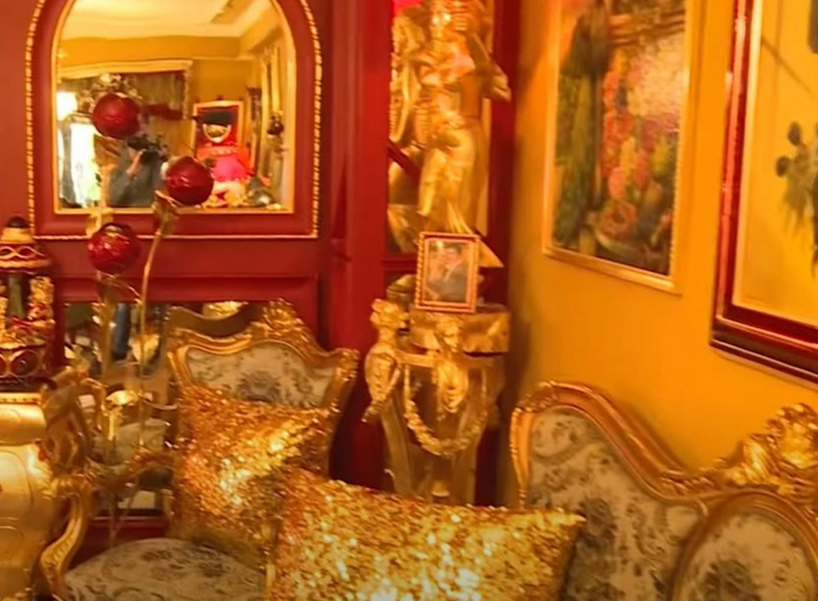Unutrašnjost cele kuće ispunjena le zlatnim detaljima. Žutozlatna boja zidova, zlatnozeleni nameštaj, kao i jastučići koji se sijaju odaju utisak luksuza i bogatstva. Ipak, u domu pevača preovladava i crvena boja koju nose ukrasi, činije i ramovi na zidovima.