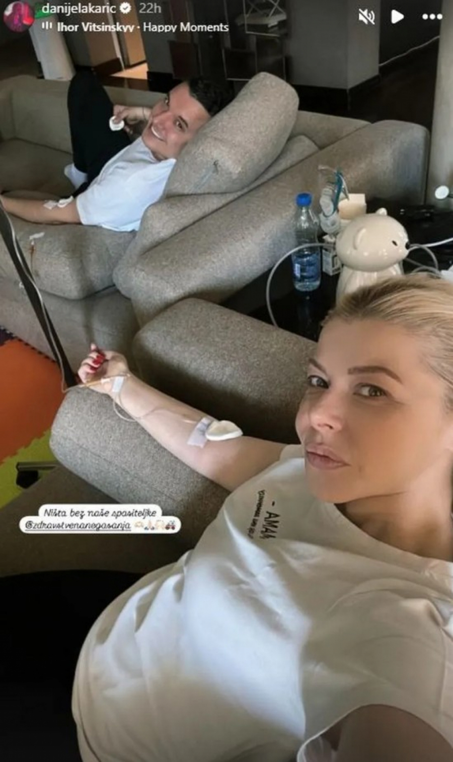 Na fotografiji se vidi da je priključena na infuziju u dnevnoj sobi dok pored nje leži njen suprug Ivan Mileusnić koji je bio u istoj situaciji.