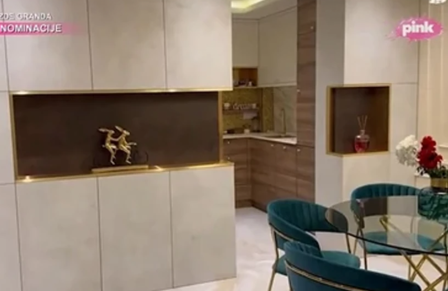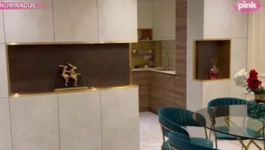 U kući dominiraju tirkizni i zlatni tonovi, a kuhinja je u bež i zlatnim nijansama. Ono što je svima zapalo za oko su pozlaćene slavine, kao i zlatna wc šolja.