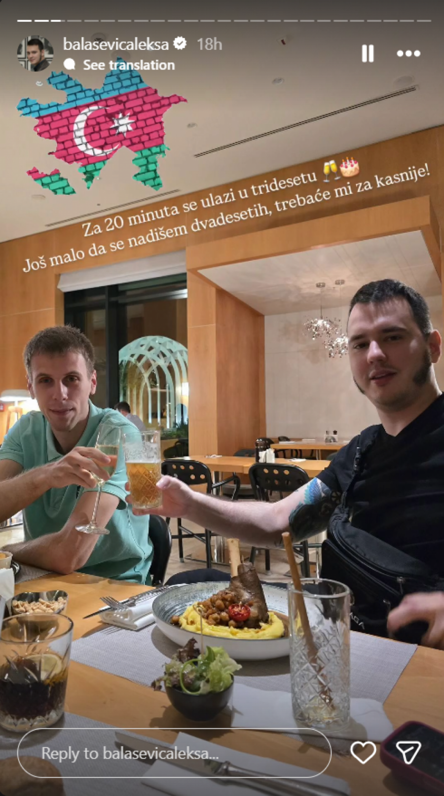 Aleksa se takođe oglasio na Instagramu objavivši fotografiju na kojoj sa prijateljem nazdravlja uz pivo.