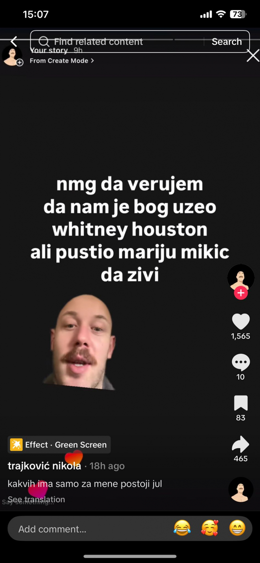 U objavi je napisao: "Ne mogu da verujem da je Bog oduzeo život Ejmi Vajnhaus, a pustio Mariju Mikić da živi", napisao je Tiktoker.