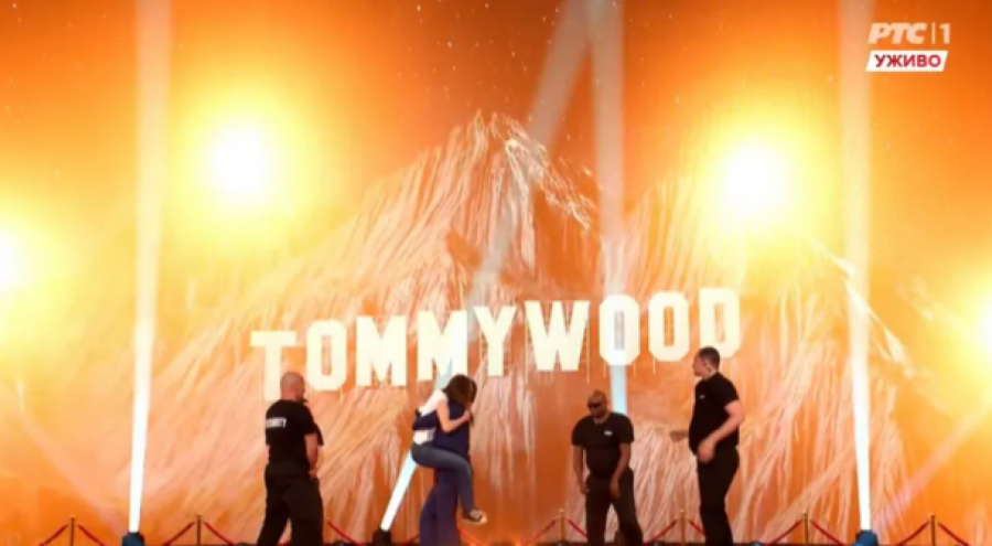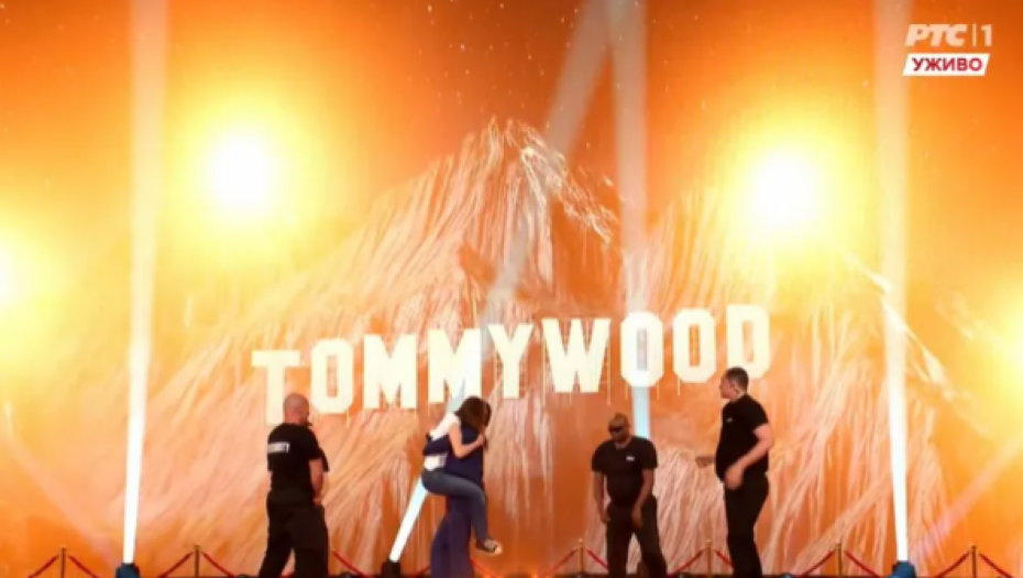 Tomija sve vreme čuva obezbeđenje, a u jednom trenutku se devojka iz bine popne na scenu, kako bi zaigrala sa njim.