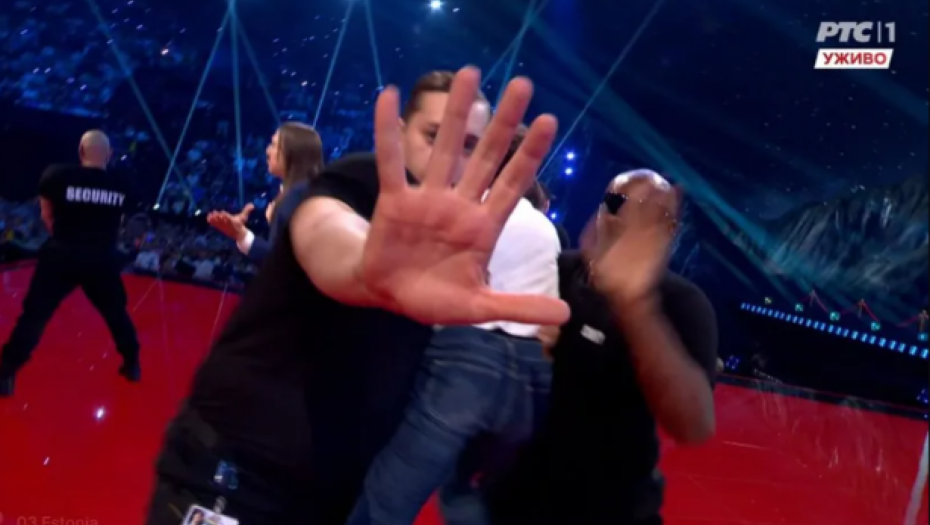 DEVOJKA IZ PUBLIKE ULETELA NA BINU EVROVIZIJE Obezbeđenje munjevito reagovala, ovo se nikada do sada nije desilo (FOTO)