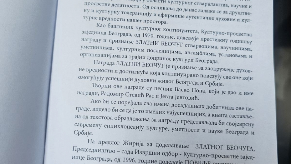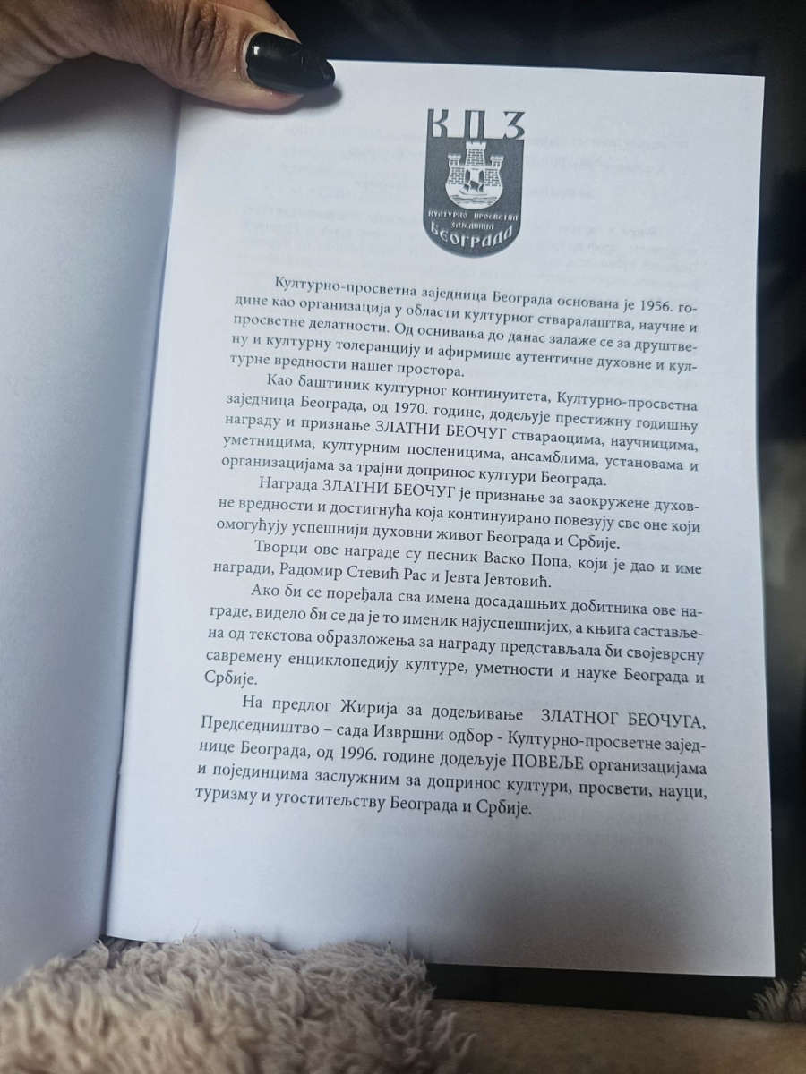Naime, Iva danas u Narodnom pozorištu u Beogradu odlikovana Zlatnim beočugom, nagradom koja se na godišnjem nivou dodeljuje za trajni doprinos kulturi prestonica.