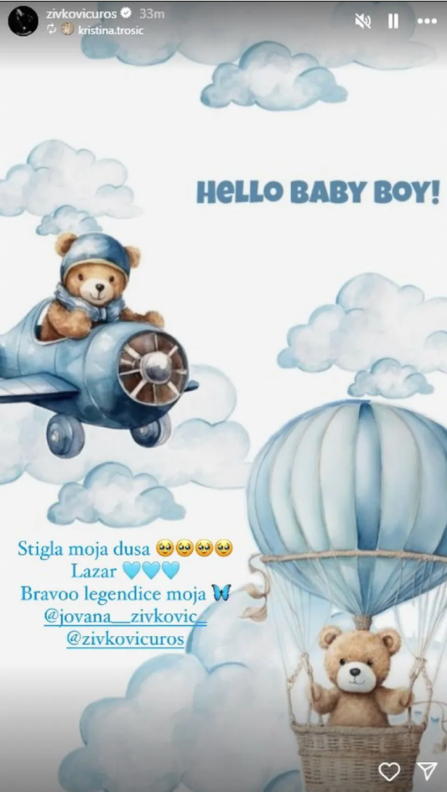Ovu divnu vest Uroš je objavio na svom Instagram profilu, tačnije čestitku koja mu je jutros stigla.