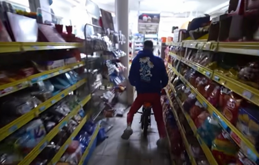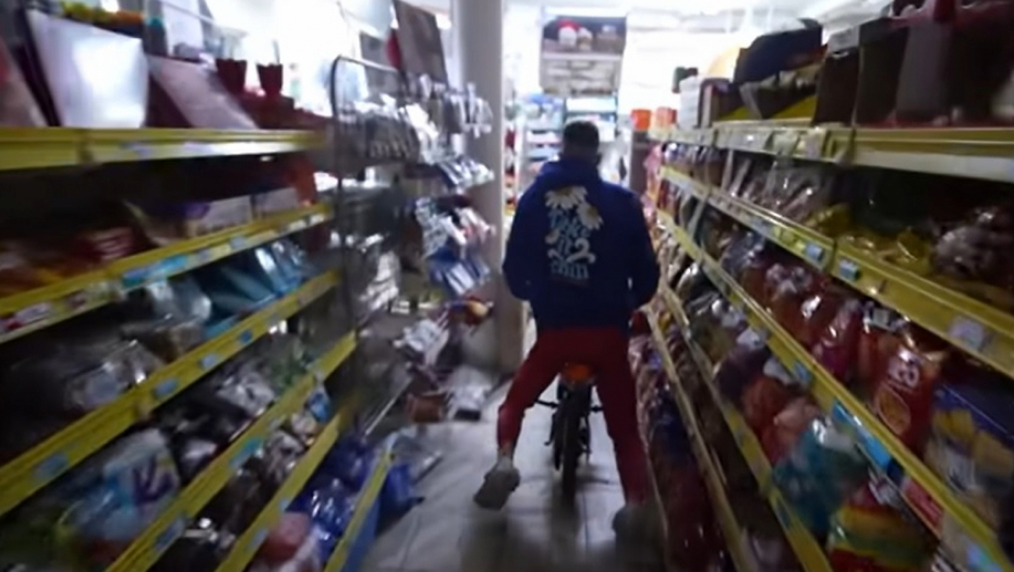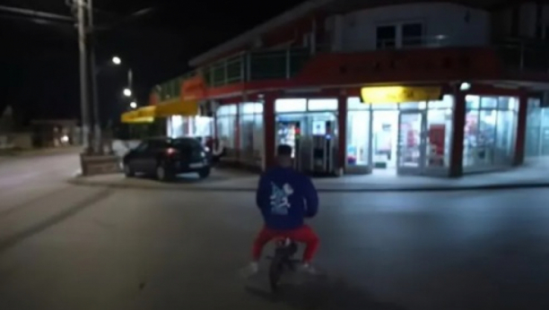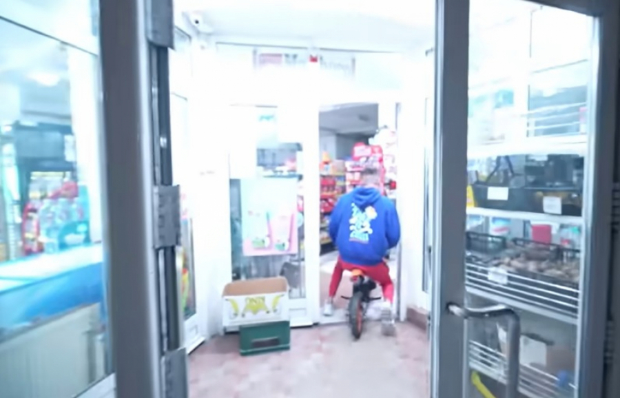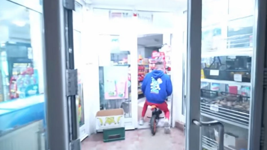 Njega je neko snimao, dok je motorom u brzini uleteo u prodavnicu, što je šokiralo prodavca. Okrenuo je krug, ne mareći čak ni za svoj život.