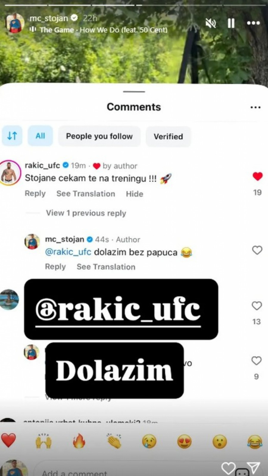 Među brojnim komentarima, MMA borac srpskog porekla Aleksandar Rakić se obratio Mc Stojanu.