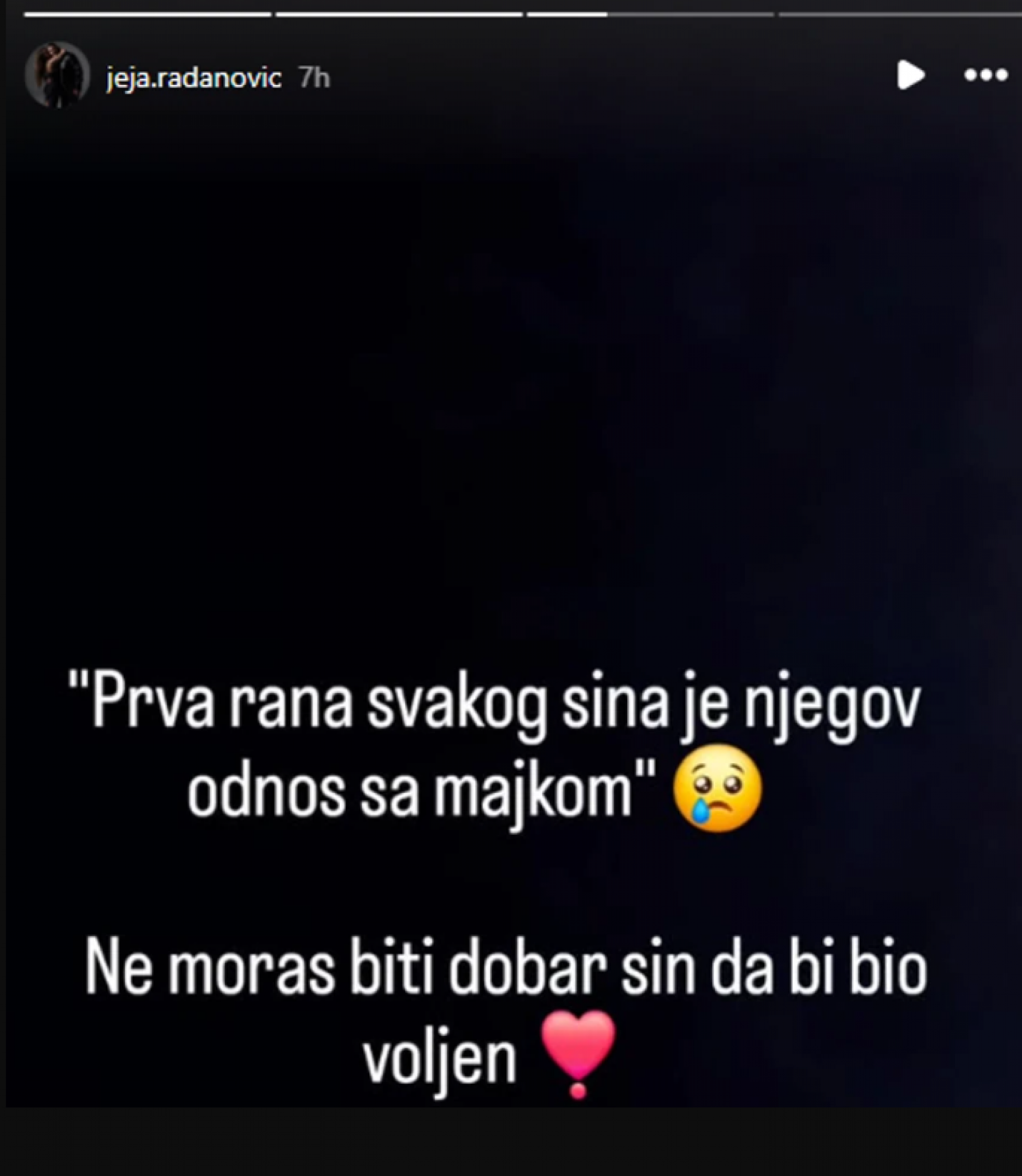 "Prva rana svakog sina je njegov odnos sa majkom", glasi citat koji je Radanovićka objavila.