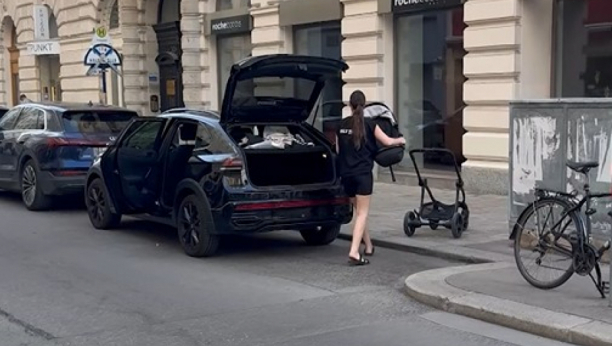 Rialdu smo prvo spazili na jednom parkingu dok je iz gepeka vadila kolica za bebu, a kada ih je namontirala, uzela je ćerkicu sa zadnjeg sedišta i smestila je u njeno „prevozno sredstvo“.