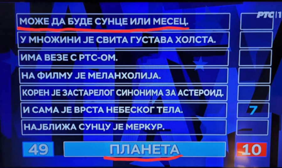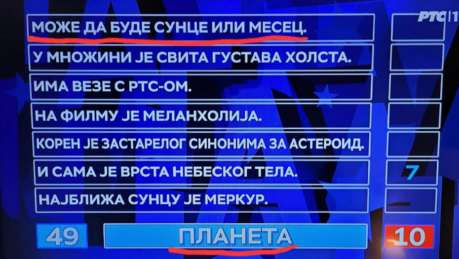 Kao konačan odgovor stavili su pojam planeta, što nije tačno, s obzirom na to da je Mesec satelit, a Sunce zvezda.