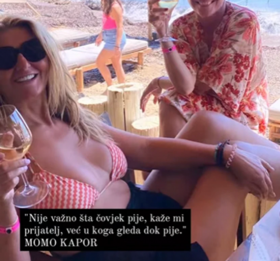 - U taverni Vatsa Spiaggia sa pogledom na uvalu, Momo Kapor je voleo da piše. Kada je otišao na nebo dobio je ulicu Mome Kapora na Kefaloniji, tablu ispisanu ćirilicom iznad stola za kojim je voleo da piše i mozaik. Popile flašu belog i uživale u hrani i muzici baš kako nas je u svojim romanima Kapor učio da slavimo život - napisala je Vesna pored videa u kojem se videlo kako uživa sa prijateljicom na moru.
