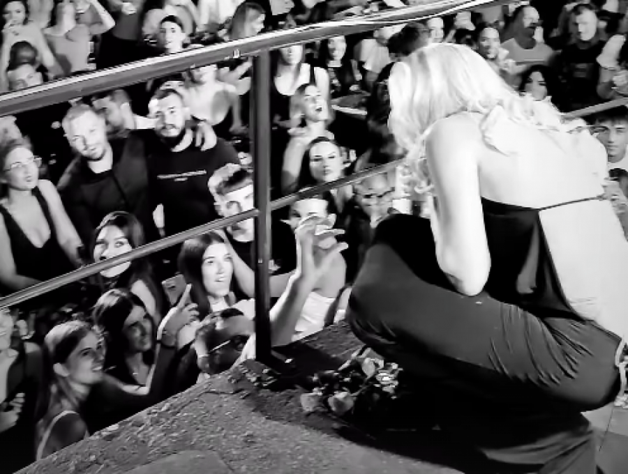 Natašu Bekvalac je sinoć odžala koncert u jednoj diskoteci u Požarevcu, a u jednom momentu je momak iz publike došao do bine i doneo joj cveće koje je ona primila.