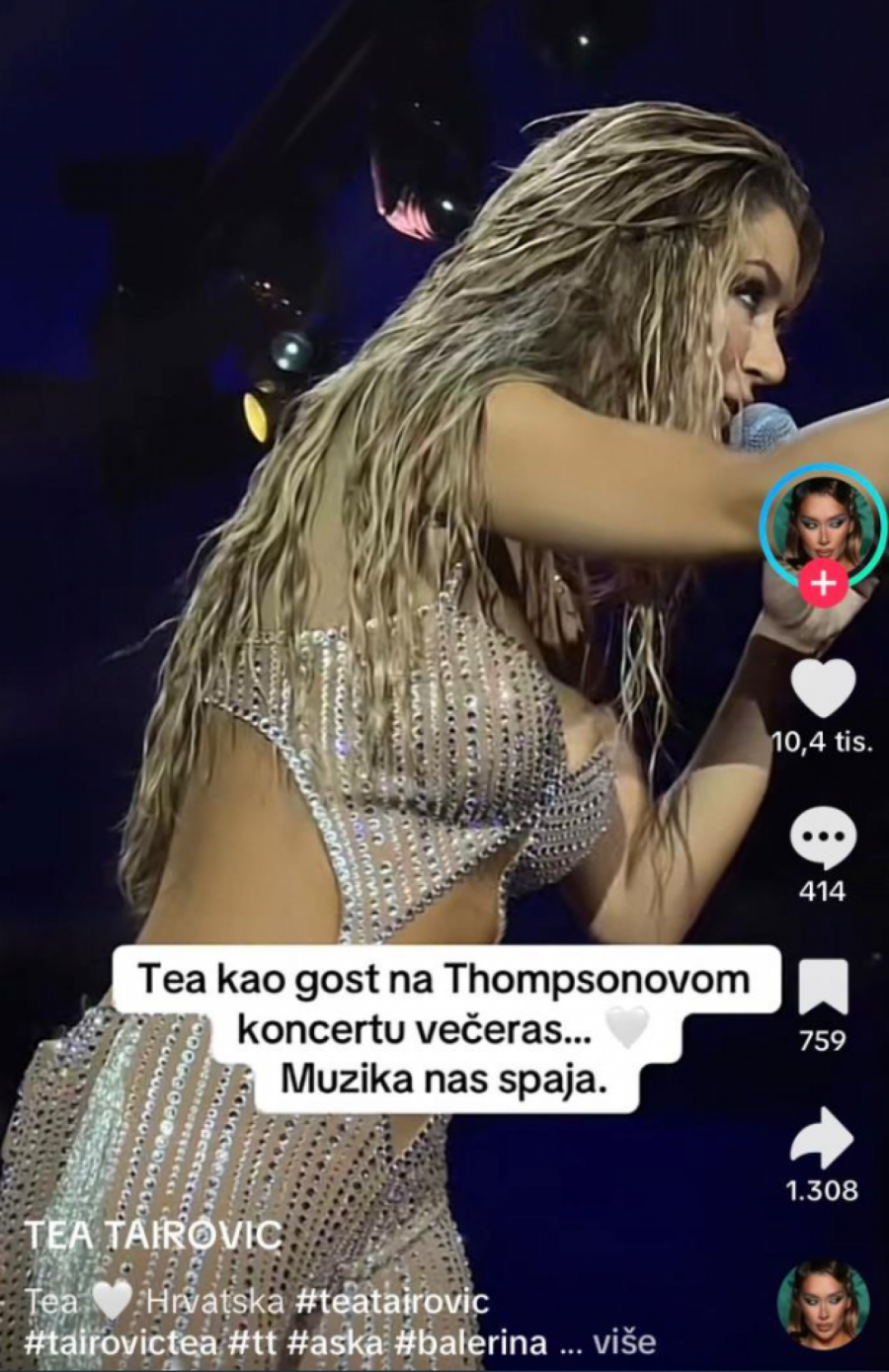 Na društvenoj mreži Tiktok, na profilu s imenom pevačice, pojavio se navodni Tein snimak iz Zagreba sa opisom: "Tea kao gost na Tompsonovom koncertu večeras. Muzika nas spaja".