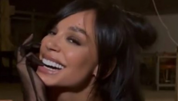 Aradinovićeva je pozirala u miniću, dok su pojedini gornji delovi stajlinga, poput bodija na stomaku i rukavica, bili providni.